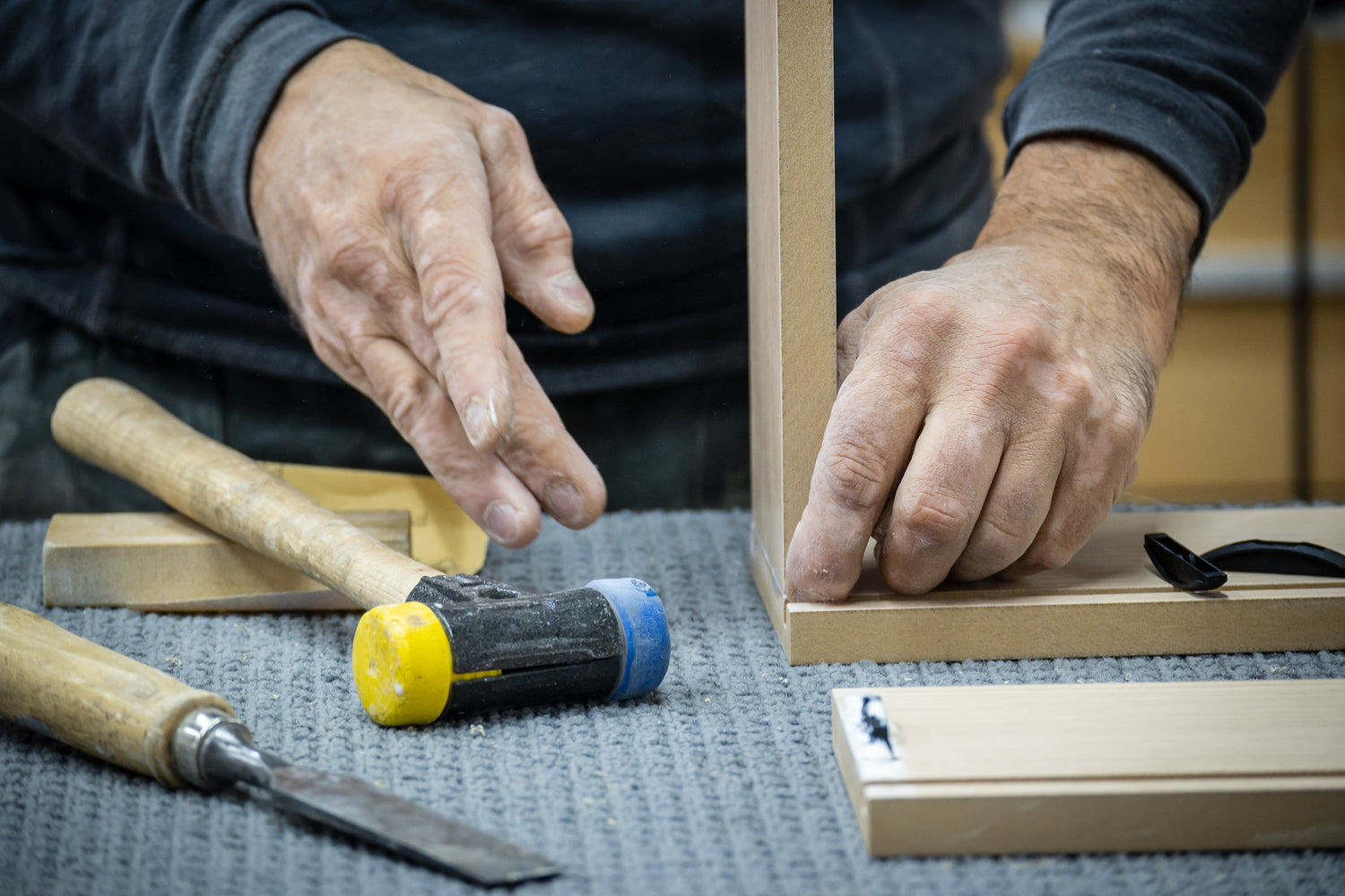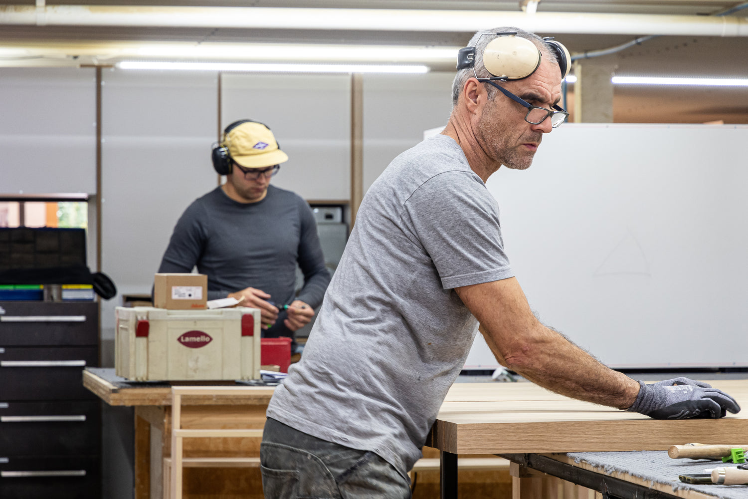 We design and make everything by hand in our Tasman workshop. Our team blends modern design, traditional craftsmanship and innovative technology. We work with a wide variety of materials; veneer, solid wood, matte HPL surfaces, hot rolled stainless steel, linoleum, natural stone, concrete and many others.